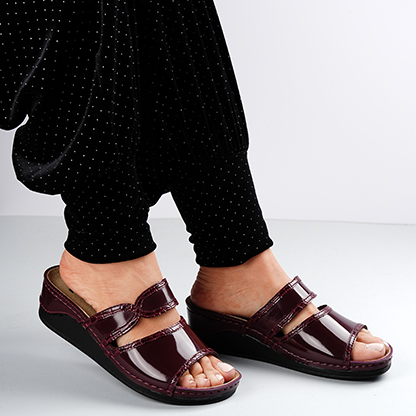 Bordeaux Shiny comfort low-mid wedge mule